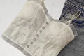 کاپ دوخته شده/بند سرشانه قابل تنظیم/پشت کراپ کش دوزی شده و کشسانی دارد/قد کراپ 40 سانت/دور زیر سینه 60 سانت(با کشسانی 84 سانت)/دور سینه با کشسانی 93 سانت/کیفیت عالی